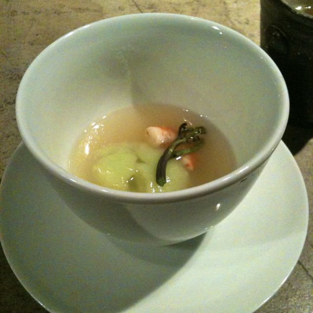 Out came the foie gras done two ways, one piece seared and topped with apricot and lavender glaze, the other served as a terrine with lavender jelly and vanilla apricot topping. This second course surpassed the first by a long stretch, and I was in foie gras heaven! The use of lavender was something refreshing, fragrant with a hint of bitterness, contrasting very well with the citrus flavor of the apricot.